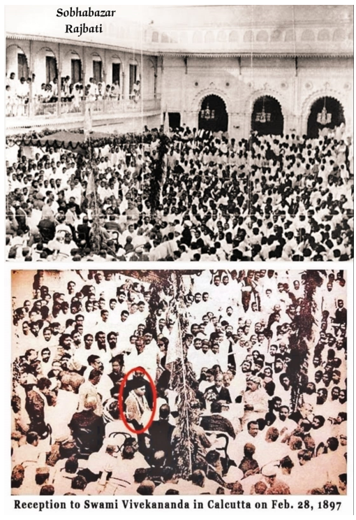 The Shobhabazar Rajbari (Rajbati) in North Kolkata is sanctified by the holy footprints of Thakur Sri Ramakrishna. Later, the massive civic reception of Swami Vivekananda was held in this very mansion on 28th February 1897 after Swamiji’s triumphant return to Calcutta from the West.